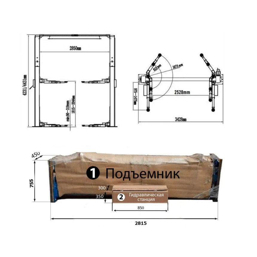 Вылет передних лап (3 секции) | 615-1073 мм | |