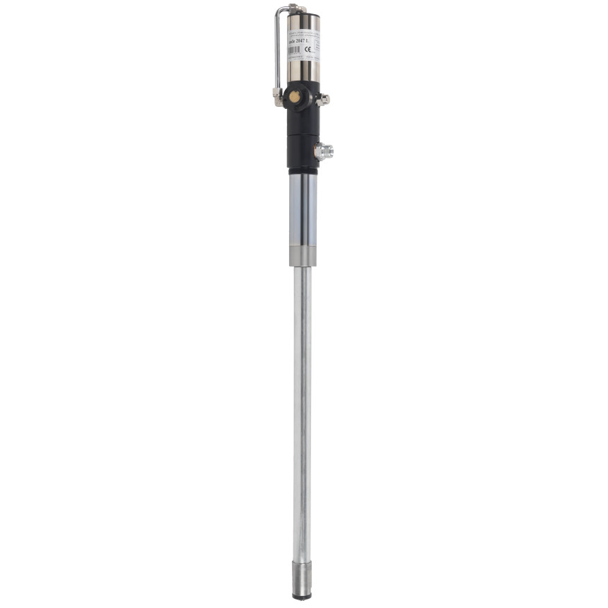 Однотактный пневматический насос высокой производительности для перекачивания на небольшие расстояния чистого антифриза и отработанных масел низкой вязкости. Снабжен гибким всасывающим шлангом длиной 1.5 м и диаметром 1" взамен жесткой трубки. В комплекте донная насадка с фильтром.