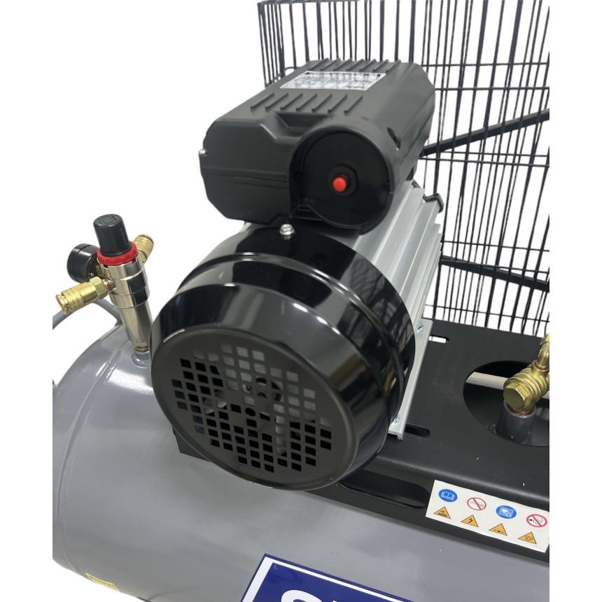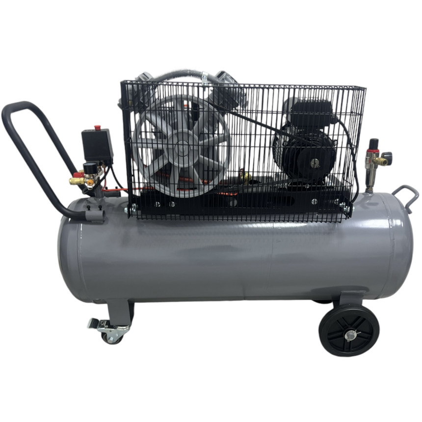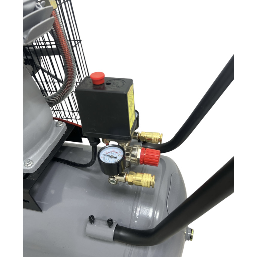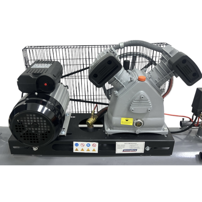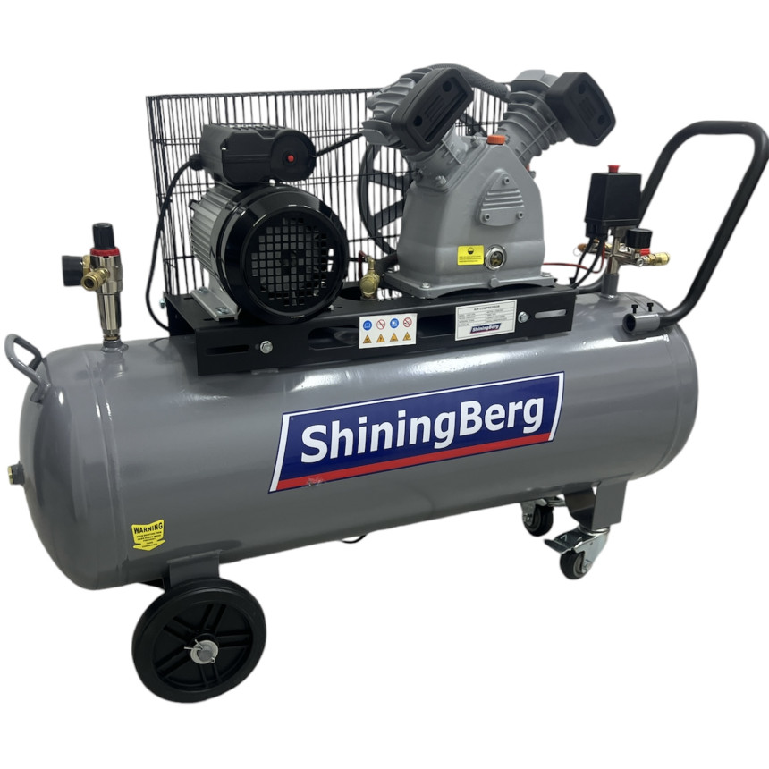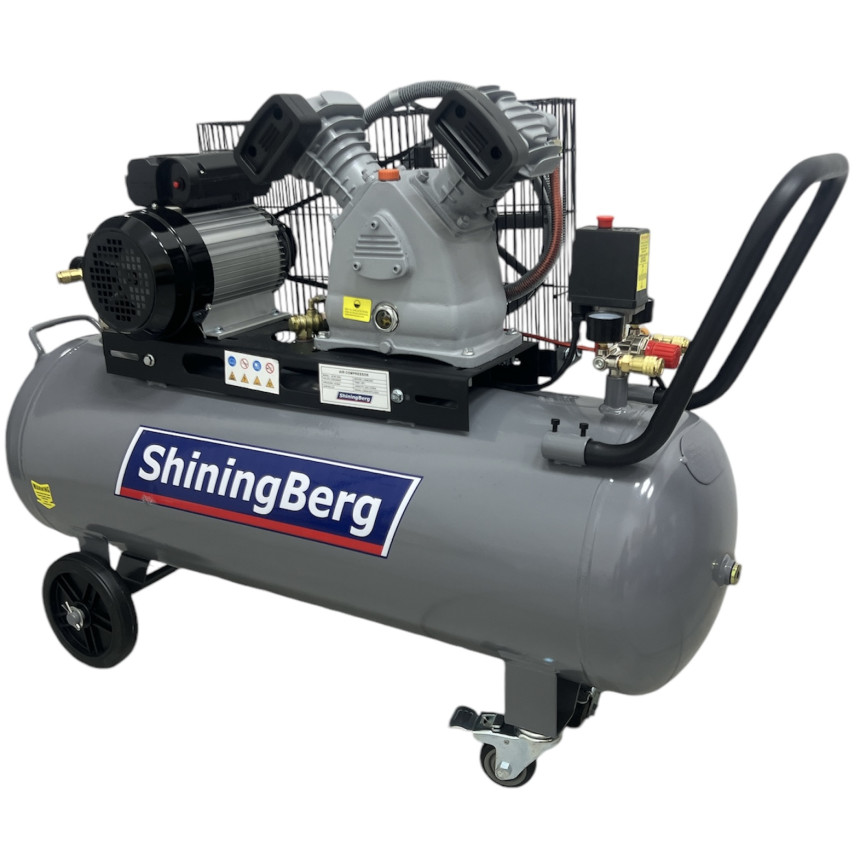 Особенности поршневого компрессора LB30-100L: • ременной привод А1400 • одноступенчатый • 2 поршня диаметром по 65 мм • электрический мотор 2.2 кВт • реле давления • редуктор давления • кран подсоединения к пневмосети • тепловое реле защиты двигателя • металлическая защита ременной передачи • предохранительный клапан на ресивере, на реле давления • индикатор уровня масла • 2 всасывающих фильтра • кран для удаления конденсата • 3 пластиковых колеса для удобства транспортировки