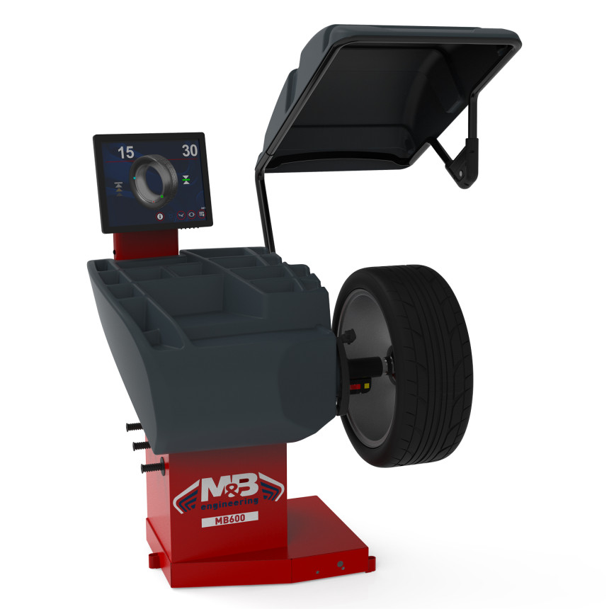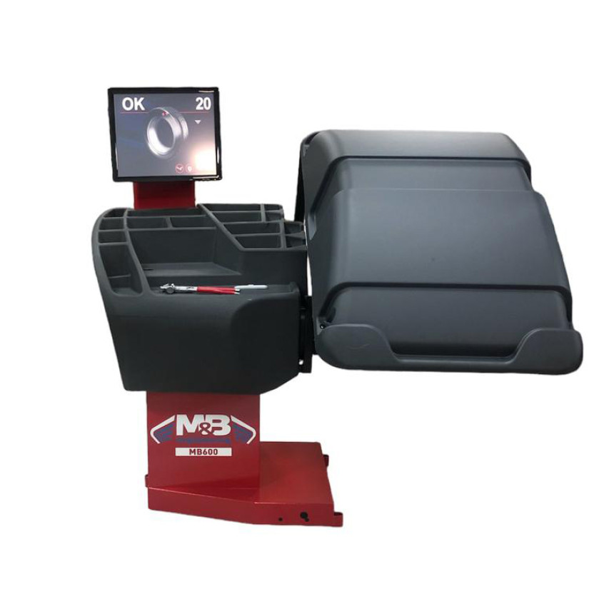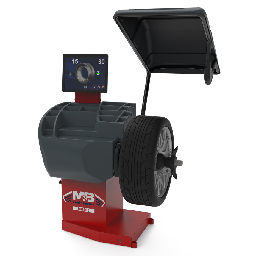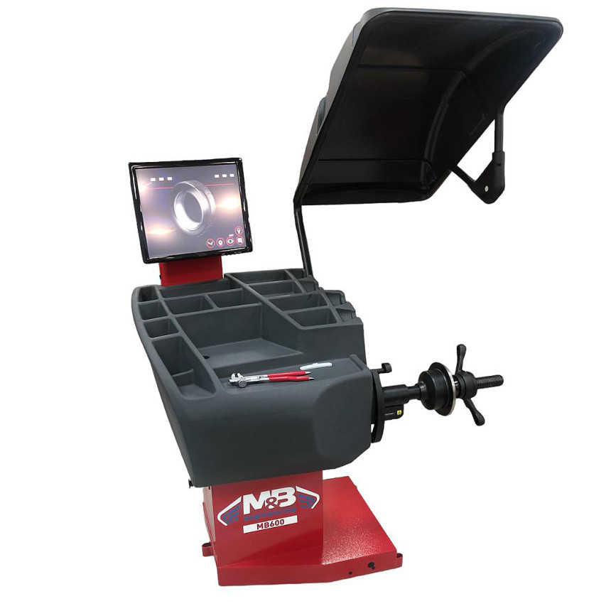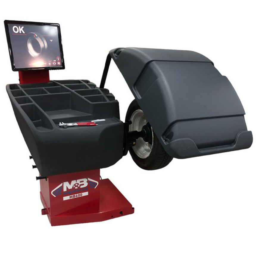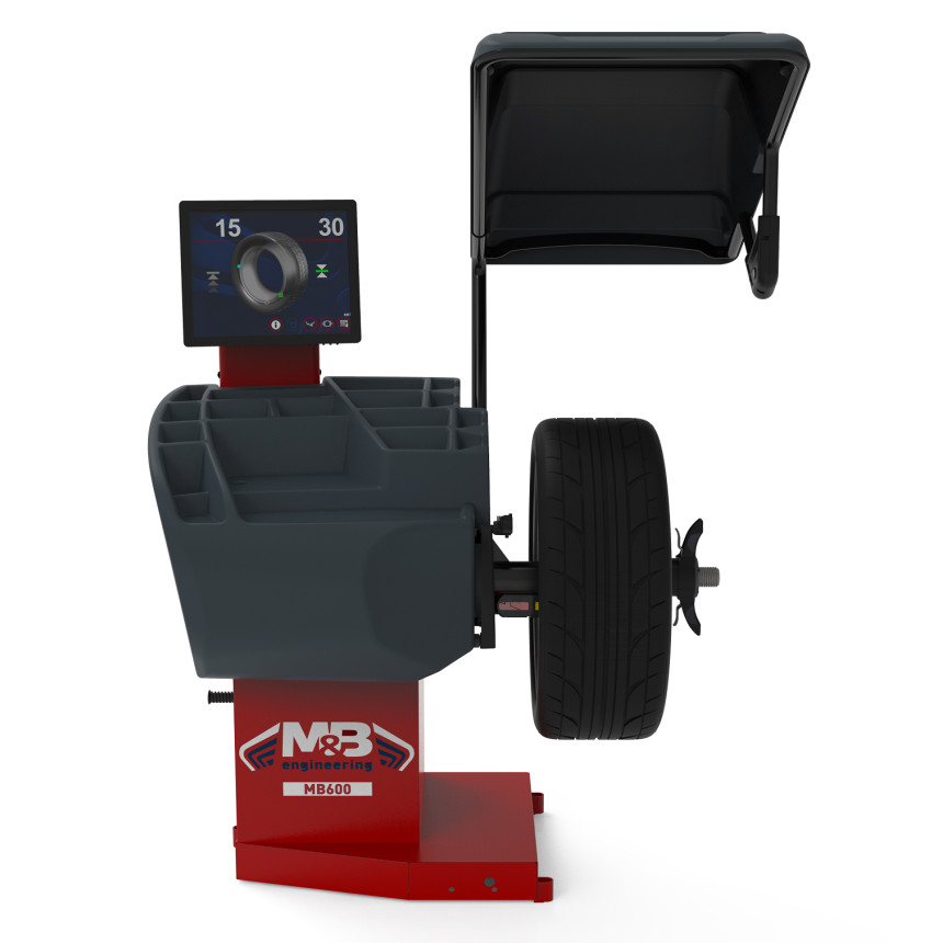 Балансувальний верстат MB600 комплектується електронною лінійкою для автоматичного вимірювання відстані до стенду та діаметру. Лазерний покажчик, який вказує точне положення для прикріплення грузиків, що наклеюються всередині диска. Електронне гальмо для блокування колеса та полегшення застосування грузиків. Система для автоматичного визначення ширини дисків та програмне забезпечення для перерахунку допустимого значення дисбалансу відповідно до ваги та розмірів кожного колеса.