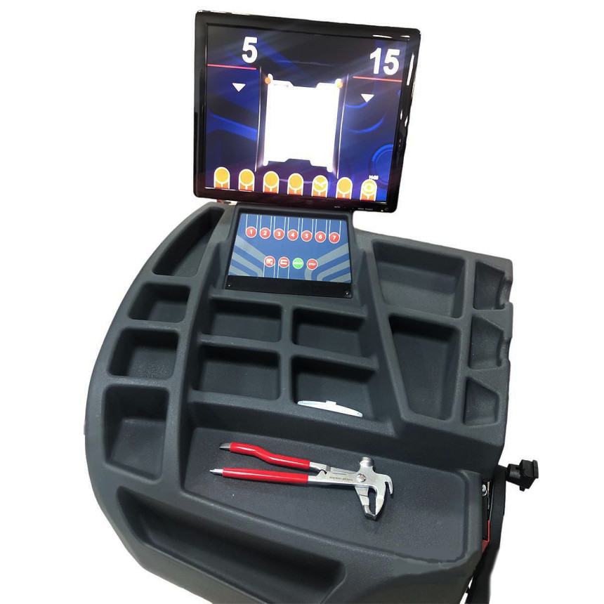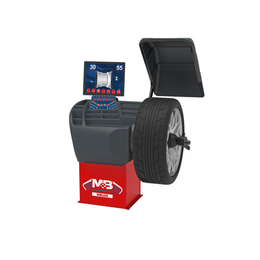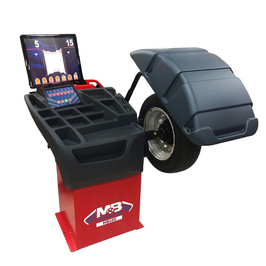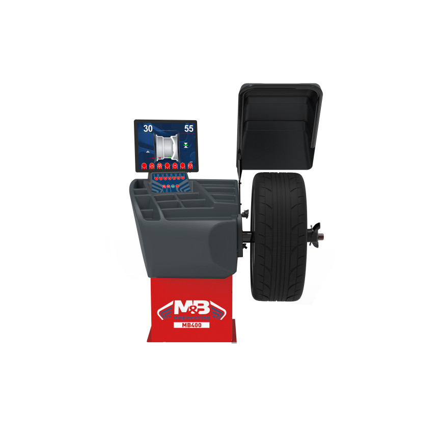 Балансувальний верстат MB400 комплектується електронною лінійкою для автоматичного вимірювання відстані до стенду та діаметру. Лазерний покажчик для точного позиціонування грузиків, що клеються. Електронне гальмо для блокування колеса та полегшення застосування вантажів. Балансувальний верстат MB400 оснащений віртуальним сонаром для автоматичного визначення ширини залізних дисків у 3D та програмним забезпеченням для перерахування допустимого значення дисбалансу відповідно до ваги та розмірів кожного колеса.