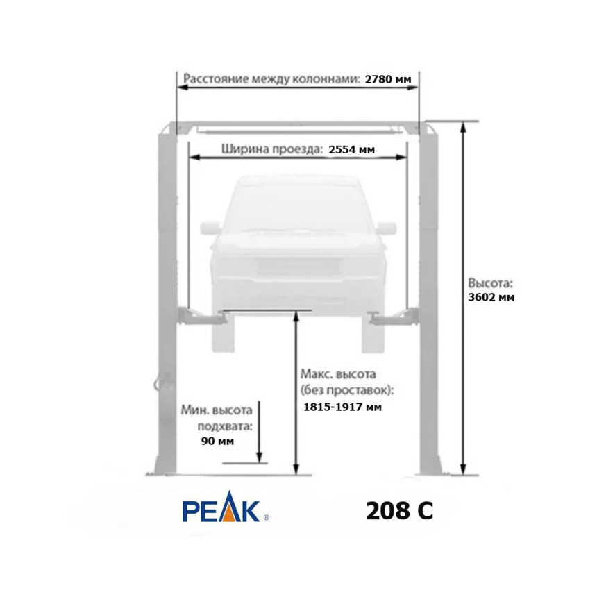 Автомобильный двухстоечный подъемник PEAK 208C с верхней синхронизацией удобен и надежен в эксплуатации при проведении самых различных слесарных работ в условиях автосервиса, СТО, гаражной мастерской.