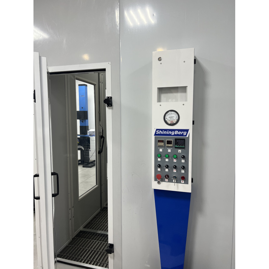 Окрасочно сушильная камера ShiningBerg предназначена для окраски легковых автомобилей целиком или частично. Камера представляет собой кабину на металлическом основании с вентиляторной группой для нагнетания избыточного давления воздуха внутри кабины и для обеспечения устойчивого воздухопотока.