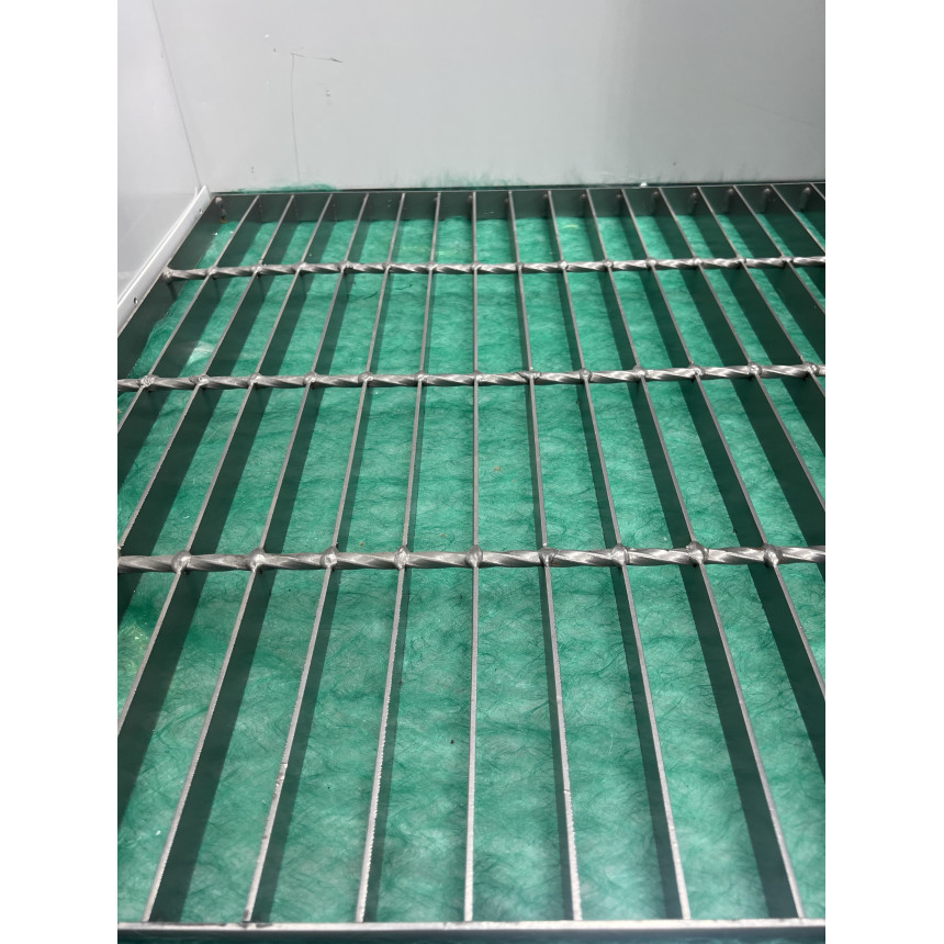 Основание металлическое, полностью решетчатый пол - 5 рядов решеток, нагрузка на отпечаток колеса 600 кг, под решетками расположены дополнительные металлические панели для точно рассчитанного распределения воздухопотока внутри камеры. Камеру можно по желанию установить на пол или в приямок.