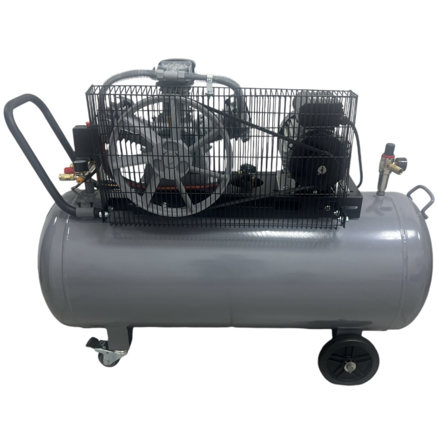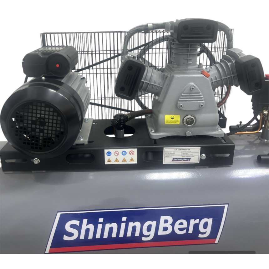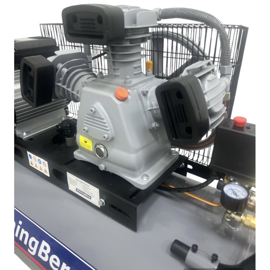 Особенности поршневого компрессора LB40-200L: • ременной привод А1400 • одноступенчатый • 3 поршня диаметром по 65 мм • электрический мотор 3 кВт • реле давления • редуктор давления • кран подсоединения к пневмосети • тепловое реле защиты двигателя • металлическая защита ременной передачи • предохранительный клапан на ресивере, на реле давления • индикатор уровня масла • 3 всасывающих фильтра • кран для удаления конденсата • 3 пластиковых колеса для удобства транспортировки