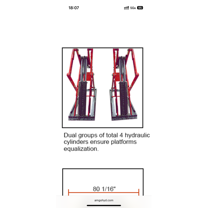 Четыре синхронизированных цилиндра обеспечивают плавный подъем обеих платформ. Подъемник оснащен автоматическим устройством безопасности с электромагнитными замками - нет необходимости в подкличении к пневмолинии. Автоматическая система управления. Система безопасности срабатывает автоматически, как только начинается подъем платформ, и отслеживает работу подъемника.